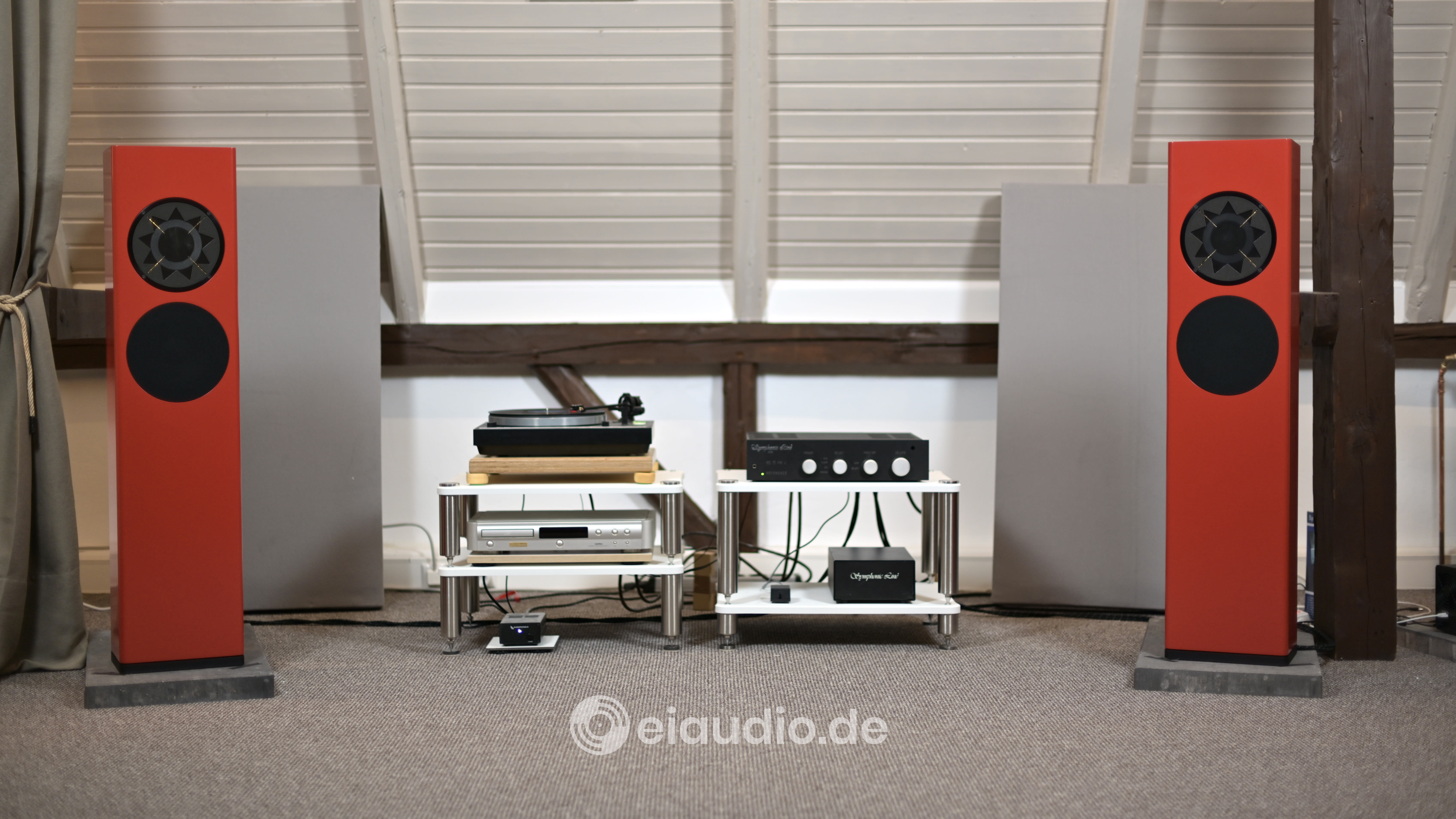 The cables behind the system do not touch, in order to prevent cross-induction and distortion. Possible differences in ground potential have been harmonized between the devices. HF shielding from the power source is provided via shunt filter, and all power cables use simple ferrite beads to further reduce high frequency noise in the system. The Thorens turntable is fitted with an affordable Audio Technica VM95 cartridge (MM) and micro-linear stylus. Its motor is driven with a special linear power supply made by Audiophonics of France. The speaker cables are single-wired WSS Platin Line LS4 (hand-crafted by Jochen Bareiß in Nürtingen, Germany) and used in combination with the cable bridges that are originally included with the speakers. Given a choice, I would have preferred to test the bi-wiring version of the WSS cables, but they were not available to me at the time. My own bi-wiring alternative, one that was based on two strands of Belden 9497 wires, did not sound as tonally convincing in combination with the powerful Symphonic Line amp. I therefore stayed with the WSS.