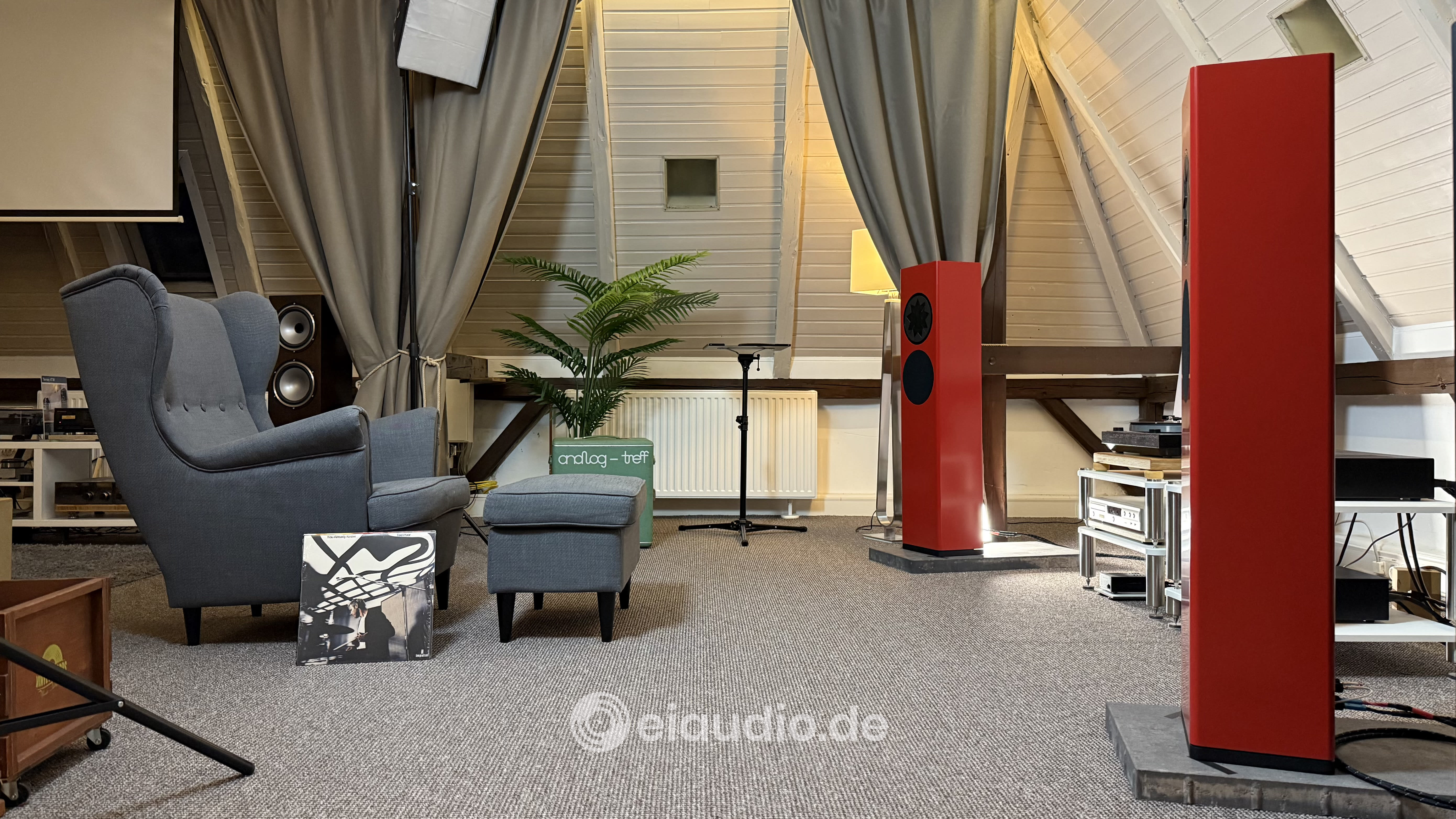 In order to ease my way into the listening session with some simple and familiar tunes, I put on Fleetwood Mac’s Pop album “Rumours” on the Thorens turntable and sat down in my usual chair. I listened to all songs on Side A and thereby noticed two things: The soundstage did not pan seamlessly. There was an acoustic left, the phantom centre, and a right, however, there was no connection between them. This surely was the result of the Manger P2 beam angle being slightly narrower than that of my Martin Logan SL3 speakers. I rotated the P2 inward towards the listening position, until their acoustic beams were crossing just behind my head. This successfully closed the stage for me and made the music pan from left to right more seamlessly. I also read reports in which reviewers toed in the P2 so that their beams crossed even in front of the listening position. However, being very sensitive when it comes to realistic sound direction, I did not gain much from the experience when I tried it myself.
