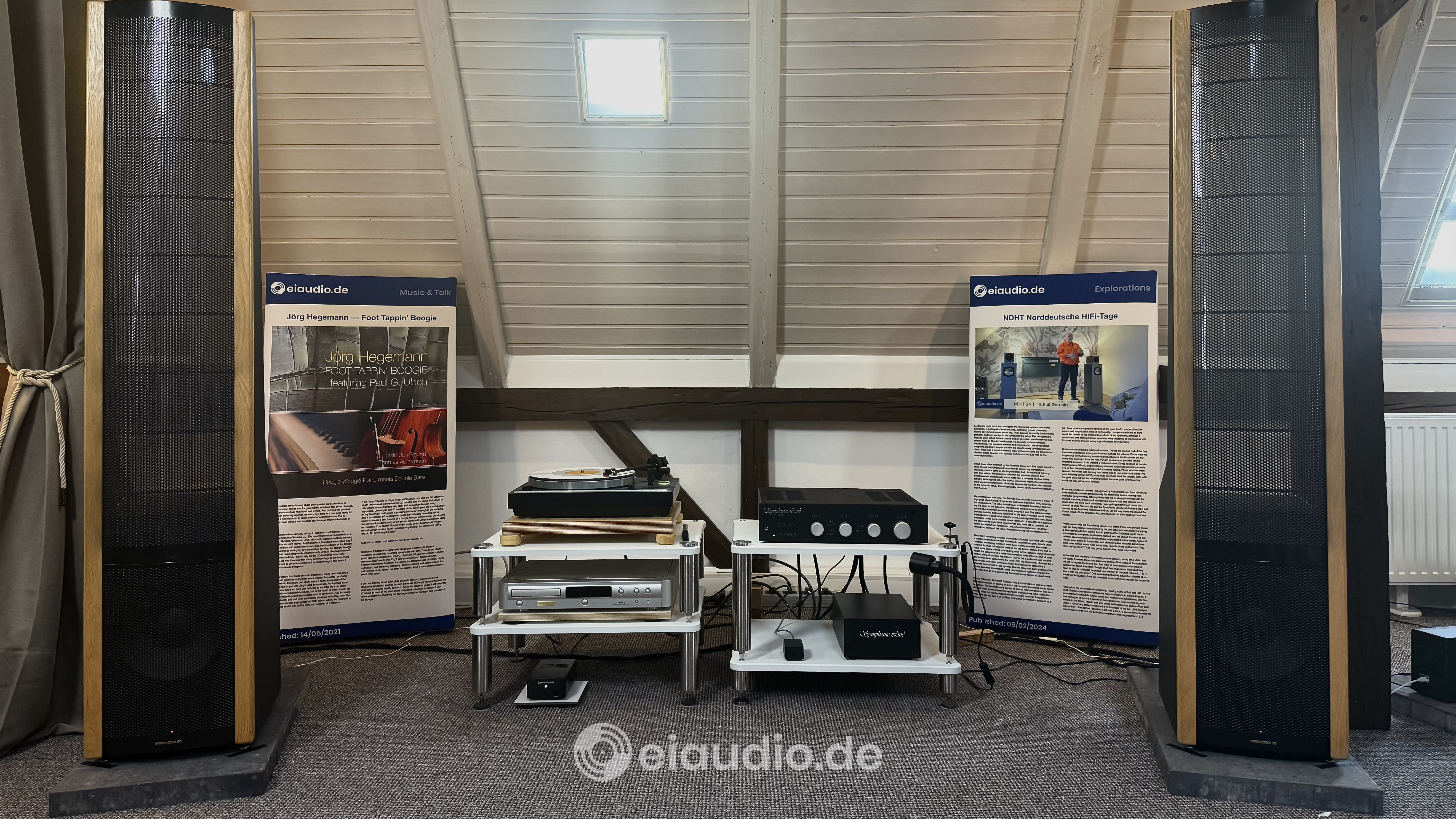 As, upon my return to our studio in Marne, the WSS cables had not yet arrived, I first set up the Manger P2 using my standard Belden 9497 speaker cables. The amplifier was a Symphonic Line RG10 MK4 Reference in combination with Rolf Gemein’s newly designed Music Cable power cord. My music sources were one trusty Thorens TD320 turntable, featuring an Audiophonics linear power supply and Audio Technica VM95 ML cartridge, as well as a Marantz CD-17 “Ken Ishiwata Signature” CD player wired with Symphonic Line Harmonie HD interconnects. To unleash its audiophile potential, our Thorens was placed on a vibration-cancelling base that was built by Klaus Finnern of Nordic Wood Art for me. Some degree of resonance treatment had also been applied on the Marantz player for a similarly positive effect.